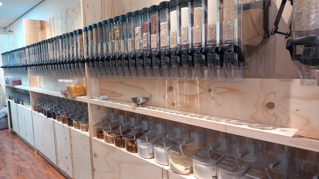 Alles is los te koop, en je kunt zoveel nemen als je nodig hebt, waardoor er, behalve al die plastic verpakkingen, ook veel product wordt bespaard.